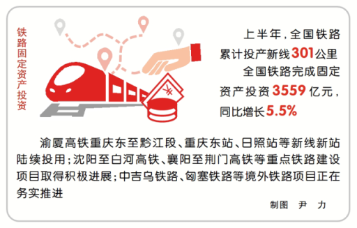 全国铁路完成固定资产投资3559亿元,同比增长5.5%,累计投产新线301公里……今年上半年,中国国家铁路集团有限公司深入贯彻落实党中央、国务院决策部署,充分发挥铁路建设投资产业链长、辐射面广、拉动效应明显的优势,优质高效推进铁路规划建设,一大批重点铁路项目取得积极进展。